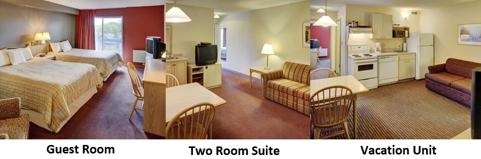 Vacation Units - With extra space to store skates, skis, golf clubs, fishing rods, or tennis rackets, these suites are ideal for a weekend get-away or an extended vacation. These units possess all the space and amenities of a lakeside cottage with the conveniences of a full-service resort. Enjoy these fantastic options for 5 or 7 days, and when available, for a 1 to 4 night stay.
